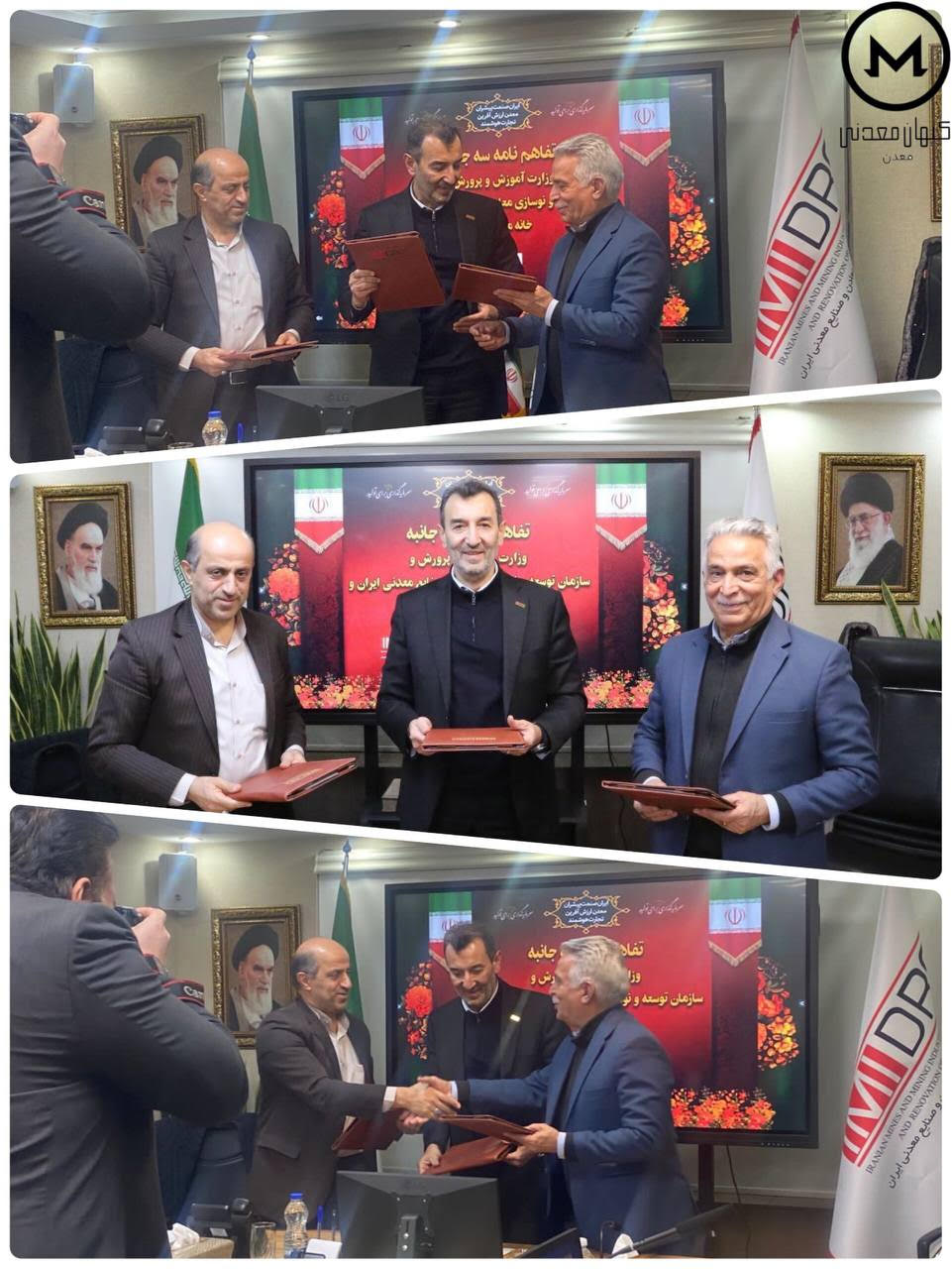 در راستای تربیت و تأمین نیروی انسانی ماهر و ارتقای مهارتهای تخصصی در بخش معدن و صنایع معدنی، تفاهمنامه سهجانبهای میان سازمان توسعه و نوسازی معادن و صنایع معدنی ایران (ایمیدرو)، معاونت آموزش متوسطه وزارت آموزش و پرورش و خانه معدن ایران به امضا رسید.